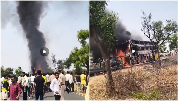 ಅಪಘಾತದ ತೀವ್ರತೆಗೆ ವಾಹನ ನಡುರಸ್ತೆಯಲ್ಲೇ ಬೆಂಕಿ ಹೊತ್ತಿಕೊಂಡು ಹೊಗೆ ಆಕಾಶದೆತ್ತರಕ್ಕೆ ಚಾಚಿತ್ತು. ಸ್ಥಳಕ್ಕೆ ಆಗಮಿಸಿದ ಅಗ್ನಿಶಾಮಕದಳ ಸಿಬ್ಬಂದಿ ಬೆಂಕಿ ನಂದಿಸಲು ಹರಸಾಹಸಪಟ್ಟರು.