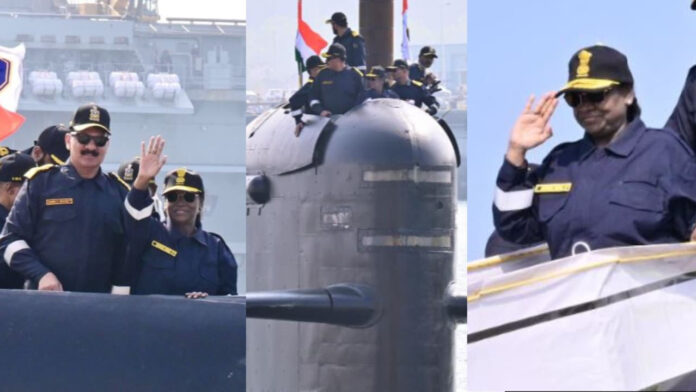 ಕಾರವಾರ: ಕಾರವಾರದ ಐ.ಎನ್.ಎಸ್ ಕದಂಬ ನೌಕಾನೆಲೆ ಡಾಕ್ ನಿಂದ ಐ.ಎನ್.ಎಸ್ ವಾಗ್ಶಿರ್ ಜಲಾಂತರ್ಗಾಮಿ ನೌಕೆಯಲ್ಲಿ ಸಮುದ್ರಯಾನ ನಡೆಸಿದ್ದಾರೆ. ಮಾಜಿ ರಾಷ್ಟ್ರಪತಿ ಡಾ.ಎಪಿಜೆ ಅಬ್ದುಲ್ ಕಲಾಂ ನಂತರ ಸಬ್ ಮೇರಿನ್ ನಲ್ಲಿ ಪ್ರಯಾಣಿಸಿದ ಎರಡನೇ ರಾಷ್ಟಪತಿ ದ್ರೌಪದಿ ಮುರ್ಮು ಆಗಿದ್ದಾರೆ.