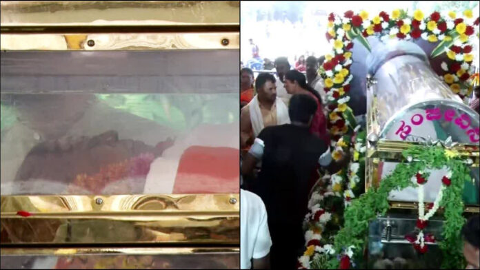 ಬೆಂಗಳೂರು: ಹಸಿರೇ ಉಸಿರು ಎಂದು ಬದುಕಿ ಬಾಳಿದ ಶತಾಯುಷಿ ಪದ್ಮಶ್ರೀ ಪ್ರಶಸ್ತಿ ಪುರಸ್ಕೃತರಾಗಿದ್ದ ಸಾಲುಮರದ ತಿಮ್ಮಕ್ಕ ಅವರ ಅಂತ್ಯಸಂಸ್ಕಾರವು ಜ್ಞಾನಭಾರತಿಯ ಕಲಾಗ್ರಾಮದಲ್ಲಿ ಶನಿವಾರ ನಡೆಯಿತು. ಕವಿ ಸಿದ್ದಲಿಂಗಯ್ಯ ಸಮಾಧಿ ಪಕ್ಕದಲ್ಲಿ ಗುರುತಿಸಲಾಗಿದ್ದ ಸ್ಥಳದಲ್ಲಿ ಅಂತ್ಯಕ್ರಿಯೆ ನೇರವೇರಿತು. ಪೊಲೀಸರು ಮೂರು ಸುತ್ತು ಕುಶಾಲತೋಪು ಸಿಡಿಸಿ, ಸಕಲ ಸರ್ಕಾರಿ ಗೌರವದೊಂದಿಗೆ ವೃಕ್ಷಮಾತೆಯನ್ನು ಬೀಳ್ಕೊಟ್ಟರು.