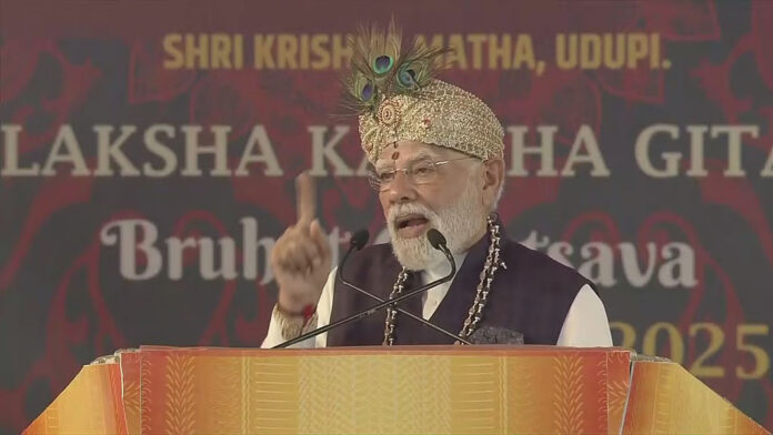 ಒಂದು ಲಕ್ಷ ಜನ ಶ್ರೀಮದ್ ಭಗವದ್ಗೀತೆಯನ್ನು ಪಠಿಸಿದ “ಲಕ್ಷ ಕಂಠ ಗೀತಾ ಪಾರಾಯಣ”ದಲ್ಲಿ ಭಾಗವಹಿಸಲು ಪ್ರಧಾನಿ ಮೋದಿ ಉಡುಪಿಗೆ ಆಗಮಿಸಿದ್ದರು. ಉಡುಪಿಯ ಶ್ರೀ ಕೃಷ್ಣ ಮಠವು ಈ ಕಾರ್ಯಕ್ರಮವನ್ನು ಆಯೋಜಿಸಿತ್ತು.